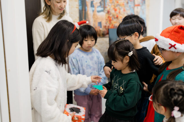 クリスマス会の締めくくりは、「プレゼント交換」です。